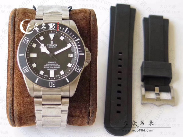 帝舵领潜型黑色战斧(升级版)腕表,特点有3:一,具有潜水标志特色的“雪花”指针二,钛金属表带和自动调节表扣,以及搭配一套天然橡胶带和扣三,升级并且加强了圈口和字面钉的蓝光刻度四,机芯升级为更稳定的9015机芯,以及外观设计相似度可与原装媲美!缺点是用了9015机芯,以后没有机会更换瑞士机。