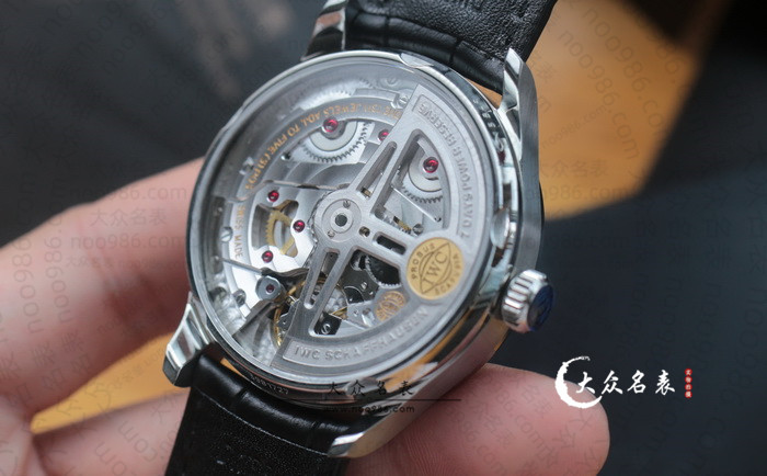 下图就是ZF葡七V5版的背透,红色宝石、并且背透样式跟原装完全一样,不过受制于机芯的设计,所以齿轮只能是装饰,并不能提供实际传动。