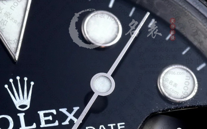 日期盘印刷也是116610LV一样一样的,大概是为了增加不同角度的可见性,这些年劳力士的日期底盘总是拉毛处理的,各种小凸点,日期数字印刷就谈不上多精美了。