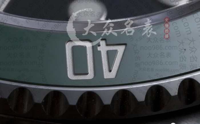 绿水鬼的绿就在这个绿色Cerachrom陶瓷圈了,假表没有能做到劳力士这种沉稳绿色的,多是艳俗的绿,因为国内假表都是氧化锆陶瓷,劳力士却是氧化铝陶瓷,材料基底都不一样,染色咋能一致;上图也可看夜明珠的特写;
