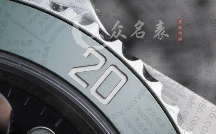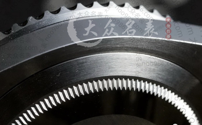 12点刻度线对准小皇冠标志,6点钟内圈刻的是机身号,这里就不贴了;早期内圈刻字是字模凿的,现在都是激光蚀刻,细节效果完全不同。