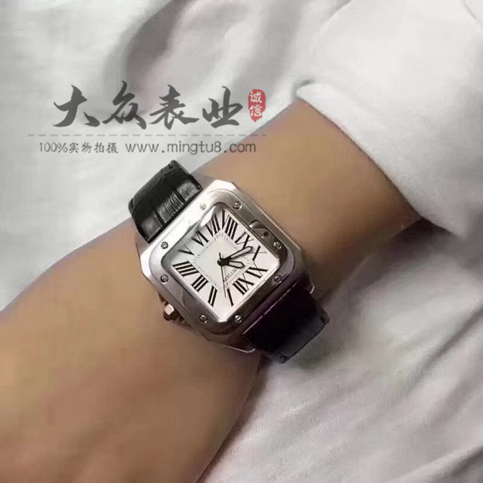 KZ厂男款卡地亚山度士大号作为全市场最好版本之一,直径51毫米x41毫米,厚度10毫米,2836自动机械机芯,316精钢材质表壳蓝宝石水晶镜面,双按扣,牛皮表带,生活防水。