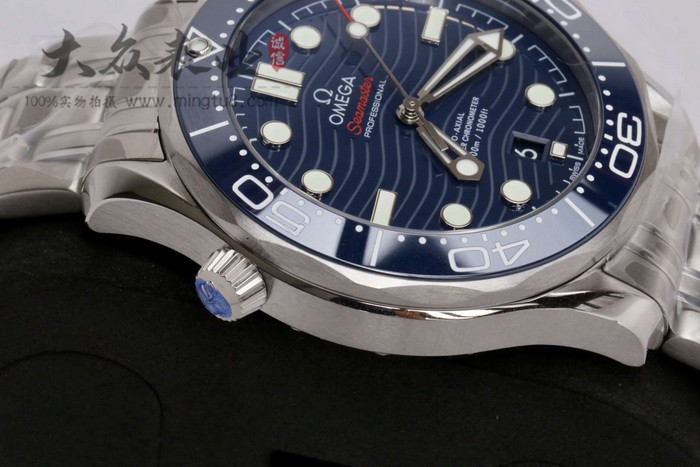 VS厂欧米茄海马300字面细节,VS采用与正品一致陶瓷材质字面并使用激光雕刻出水波纹理,干净利落、整洁清晰LOG0和字体印刷立体饱满,指针颜色一致,刻度夜光填充饱满均匀、日历清晰,VS欧米茄300米无惧细节对比。VS的海马300表壳做工细腻,通过表壳缎面拉丝、壳身弧度等打磨精细程度的对比,体现的淋漓尽致。把头底盖均装配与正品一致的防水橡胶圈,100%三度防水。整表直径与厚度均与正品高度一致,表壳缎面拉丝细腻光滑、宛若天成。把头齿距与正品丝毫不差。为保证每节表链灵活自如且光洁细腻,VS厂欧米茄海马300米腕表表带制作过程极其复杂,周期极长。采用双按钮式安全折叠表扣;表扣内部别有洞天,同步还原正品“伸缩延长表带”功能,比如夏天时人手腕会变粗,有“伸缩延长表带”就无需用专用工具加长整条表带,徒手可修改。VS厂欧米茄海马300腕表表背同样呈现波纹边缘设计,透过蓝宝石镜面玻璃表镜我们可以看到VS工厂自产8800机芯清晰可见,机芯结构、宝石颜色、黑色摆轮以及打磨与正品别无二致。机芯,VS工厂的海马同样采用定制版的8800机芯,整体细节以及功能基本同正品一致,只有细微的校对误差的方式不同,正品的海马全部都是无卡度游丝结构,而VS全部采用的有卡度游丝,这个并不是工厂无法达到与正品一致,而是无卡度游丝结构成本高,一旦采用这种技术,那么将大幅度提高做工成本,失去了复刻表的性价比,会变得没有意义。