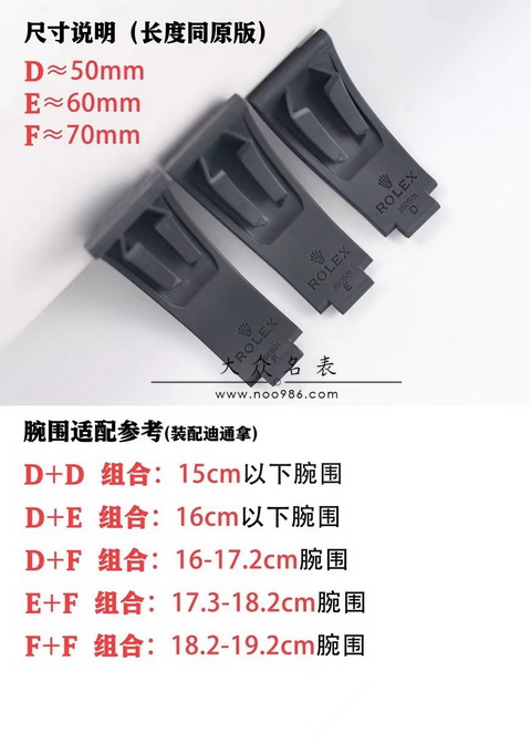 D≈50mm E≈60mm F≈70mm。D+D组合:15cm以下腕围。D+E:16cm以下腕围,D+F组合:16-17.2cm腕围,E+F组合:17.3-18.2cm腕围,F+F组合:18.2-19.2cm腕围。