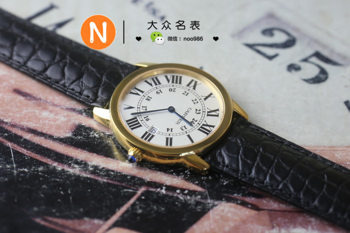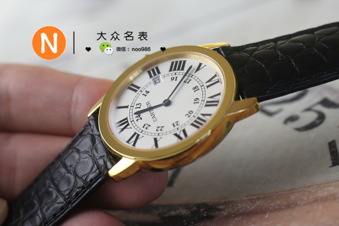 一提起卡地亚,相信大多数人第一时间想到的就是蓝气球,不得不说卡地亚蓝气球确实是卡地亚家族中经典腕表之一,专柜销量也是超级火爆,正因为如此,我们错过了其他卡地亚的精美款式,今天大众名表为大家介绍一款伦敦SOLO系列腕表,通过介绍你会喜欢上整体看起来干净简约的卡地亚伦敦SOLO系列。需要注意的是,石英版本的SOLO有两个尺寸,男装是36mm,女装是29.5mm,机械版的男装直径会去到40mm左右,大家注意区别。今天就以黄金色的男装石英版本为例进行讲解介绍:
