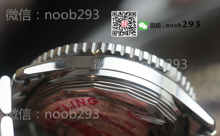 底盖我自己也研究了一番,留意底盖突出来的标志还有字体,有做圆滑抛光处理的。一些前期版的百灵例如N厂的这个部分处理就不够好,直角位很多,所以为什么很多客户反应表背有点割手应该就是这个问题造成的。不过随着技术还有消费者要求的提高,最近GF出品的百灵也有留意到这个细节了。